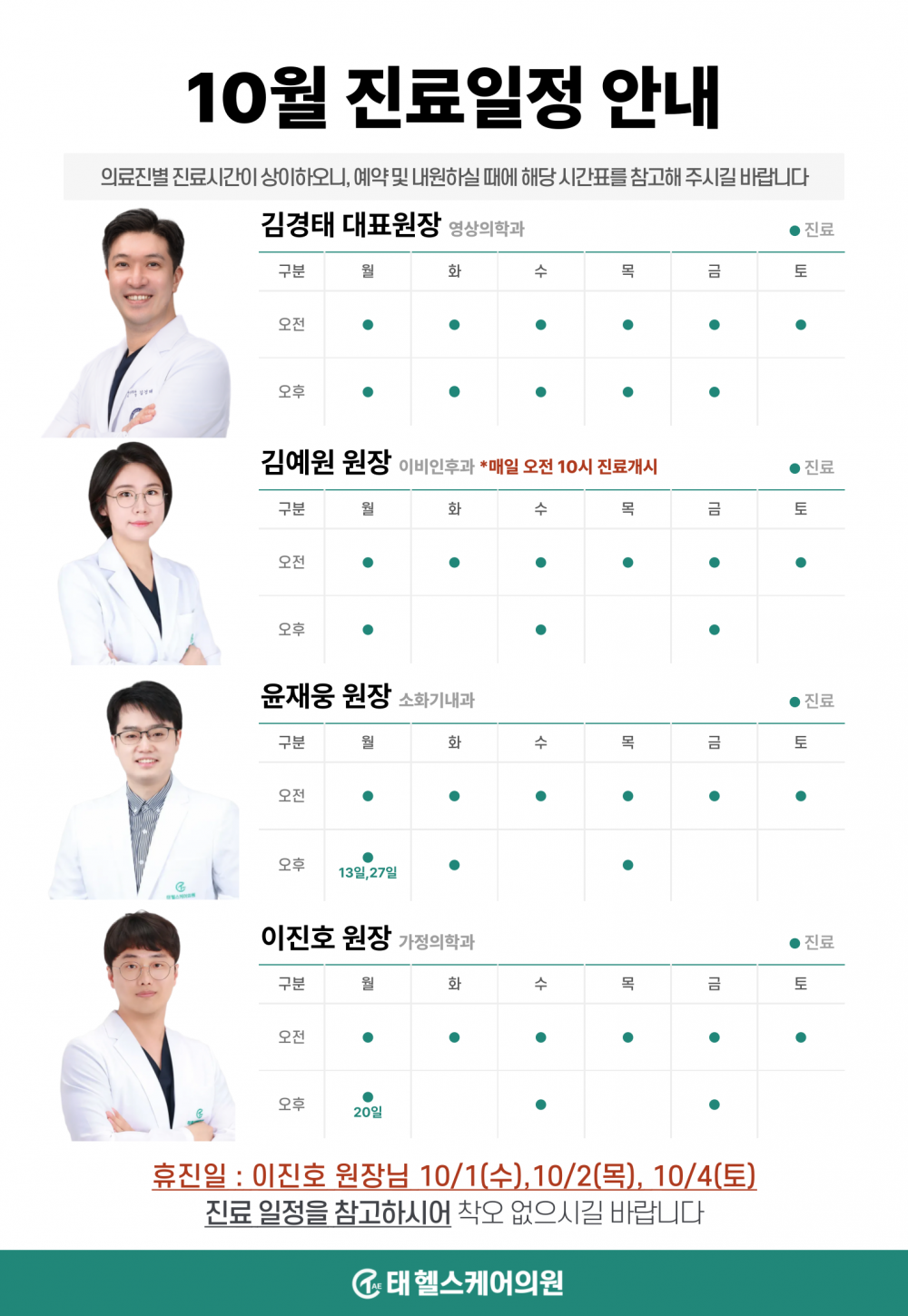 인쇄 스크랩 목록 2025년 10월 의료진별 진료스케쥴 페이지 정보 태헬스케어 47 0 2025-10-10 16:03:10 본문 인쇄 스크랩 목록 이전글 ▲2025년 연말 [더채움검진] 이벤트 (10.10~12.31) 다음글 ▼2025년 추석맞이 이벤트(9.1~10.31) 댓글목록 등록된 댓글이 없습니다. 이전글 다음글 목록