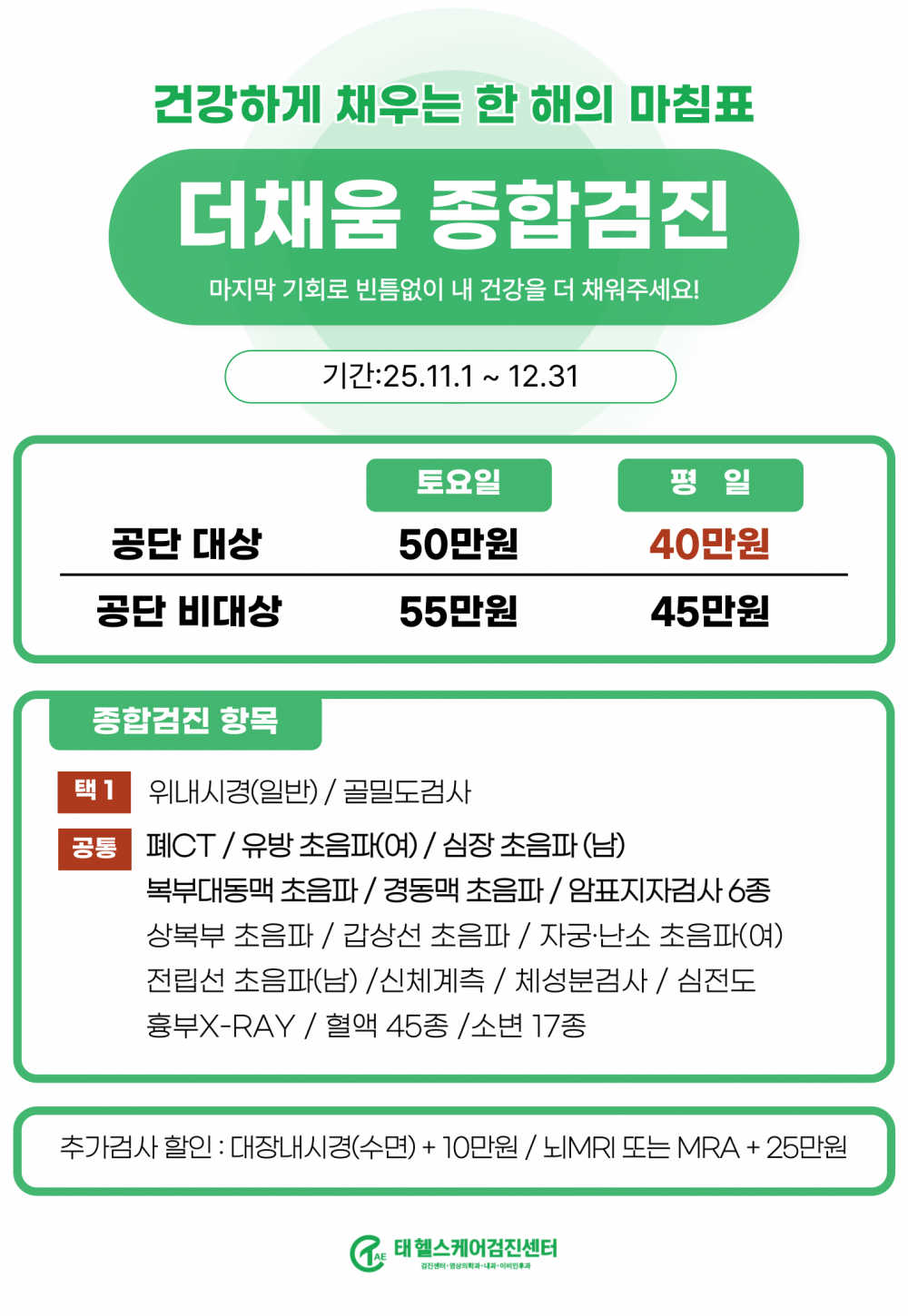 ★2025년 마지막 [더채움 종합검진] 할인 이벤트 안내★